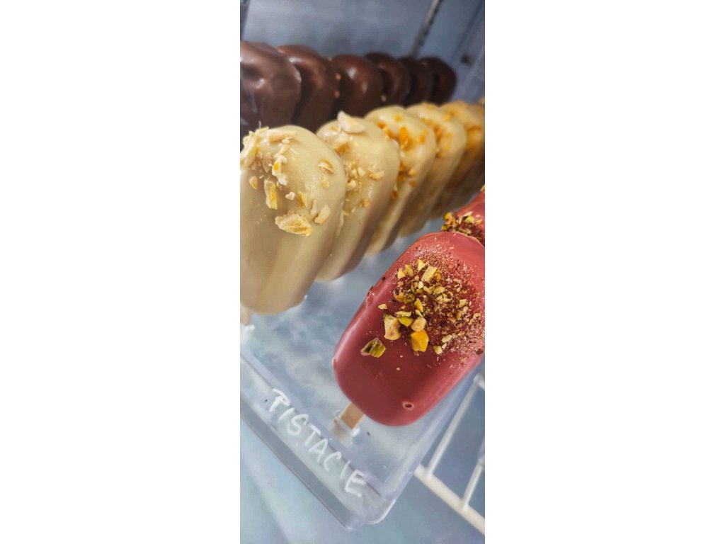 Pistácie gelato v kvalitní belgické ruby čokoládě sypané pistáciemi. AL.: 7, 8.7