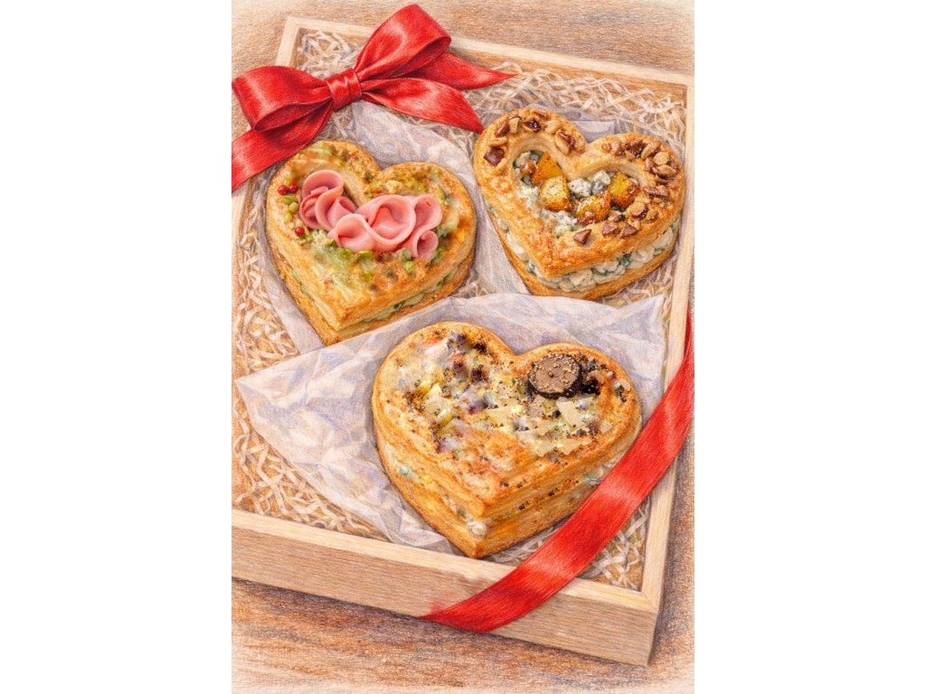 Odpalované srdce plněné pistáciemi, jemnou mortadellou a růžovým pepřem. Elegantní chutě, jemná provokace.
